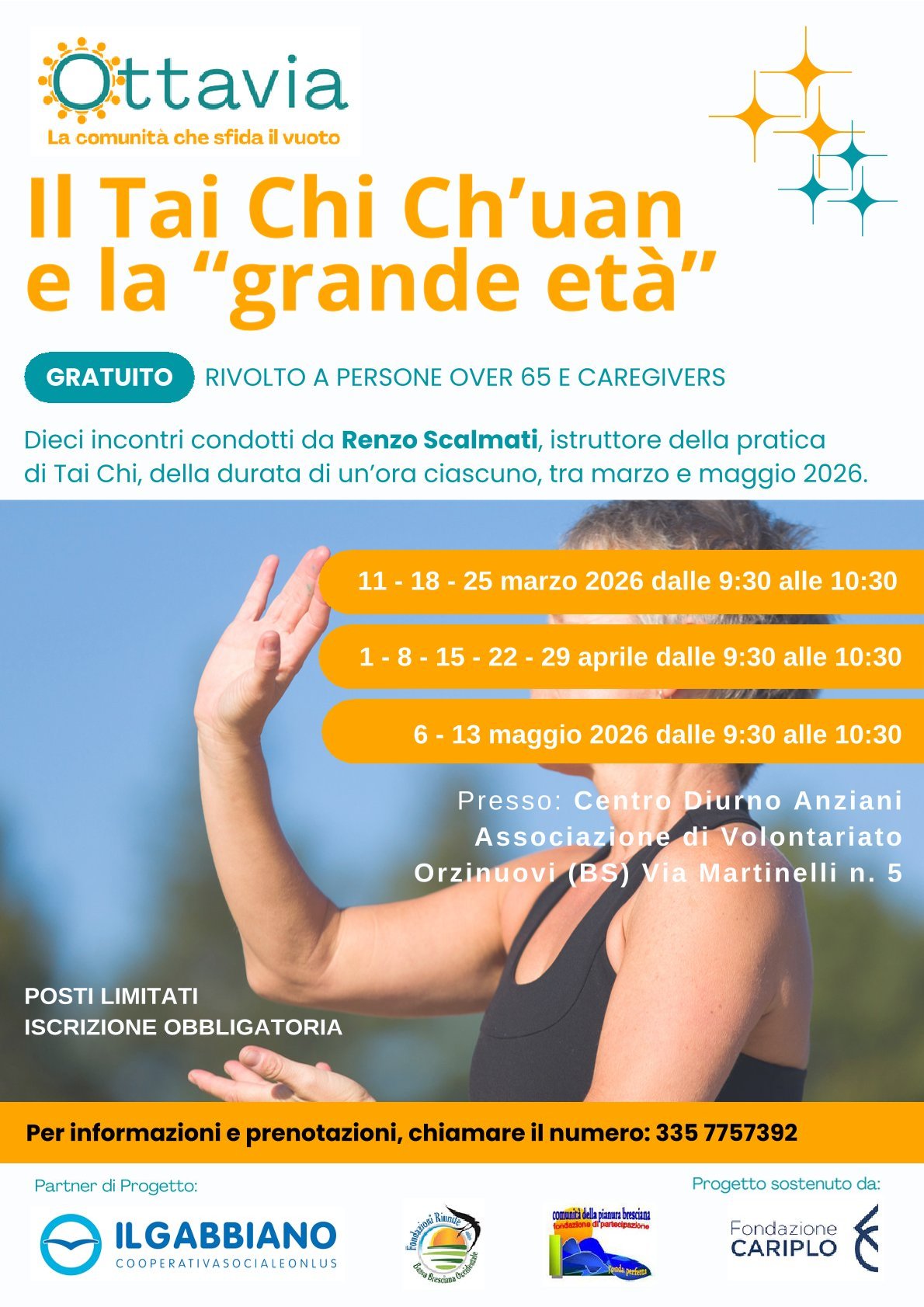 Promossi dalla 𝗖𝗼𝗼𝗽𝗲𝗿𝗮𝘁𝗶𝘃𝗮 𝗜𝗟 𝗚𝗔𝗕𝗕𝗜𝗔𝗡𝗢 (𝑢𝑛𝑜 𝑑𝑒𝑖 𝑠𝑜𝑔𝑔𝑒𝑡𝑡𝑖 𝑎𝑐𝑐𝑟𝑒𝑑𝑖𝑡𝑎𝑡𝑖 𝑝𝑒𝑟 𝑙'𝑒𝑟𝑜𝑔𝑎𝑧𝑖𝑜𝑛𝑒 𝑑𝑒𝑖 𝑠𝑒𝑟𝑣𝑖𝑧𝑖 𝑑𝑖 𝑎𝑠𝑠𝑖𝑠𝑡𝑒𝑛𝑧𝑎 𝑠𝑢𝑙 𝑡𝑒𝑟𝑟𝑖𝑡𝑜𝑟𝑖𝑜) in collaborazione con la "𝗖𝗼𝗺𝘂𝗻𝗶𝘁𝗮̀ 𝗱𝗲𝗹𝗹𝗮 𝗣𝗶𝗮𝗻𝘂𝗿𝗮 𝗕𝗿𝗲𝘀𝗰𝗶𝗮𝗻𝗮 - 𝗙𝗼𝗻𝗱𝗮𝘇𝗶𝗼𝗻𝗲 𝗱𝗶 𝗣𝗮𝗿𝘁𝗲𝗰𝗶𝗽𝗮𝘇𝗶𝗼𝗻𝗲" (𝑒𝑛𝑡𝑒 𝑝𝑟𝑒𝑝𝑜𝑠𝑡𝑜 𝑎𝑙𝑙𝑎 𝑔𝑒𝑠𝑡𝑖𝑜𝑛𝑒 𝑎𝑠𝑠𝑜𝑐𝑖𝑎𝑡𝑎 𝑑𝑒𝑖 𝑠𝑒𝑟𝑣𝑖𝑧𝑖 𝑠𝑜𝑐𝑖𝑎𝑙𝑖 𝑝𝑒𝑟 𝑖 𝑐𝑜𝑚𝑢𝑛𝑖 𝑑𝑒𝑙𝑙'𝑎𝑚𝑏𝑖𝑡𝑜 𝑑𝑖𝑠𝑡𝑟𝑒𝑡𝑡𝑢𝑎𝑙𝑒, 𝑓𝑟𝑎 𝑐𝑢𝑖 𝑃𝑜𝑚𝑝𝑖𝑎𝑛𝑜) e le "𝗙𝗼𝗻𝗱𝗮𝘇𝗶𝗼𝗻𝗶 𝗥𝗶𝘂𝗻𝗶𝘁𝗲 𝗕𝗕𝗢", nell'ambito del progetto 𝗢𝗧𝗧𝗔𝗩𝗜𝗔 -𝗟𝗮 𝗰𝗼𝗺𝘂𝗻𝗶𝘁𝗮̀ 𝗰𝗵𝗲 𝘀𝗳𝗶𝗱𝗮 𝗶𝗹 𝘃𝘂𝗼𝘁𝗼- Fondo CARIPLO: Incontri di TAI CHI e di MOBILITA' ARTICOLARE.